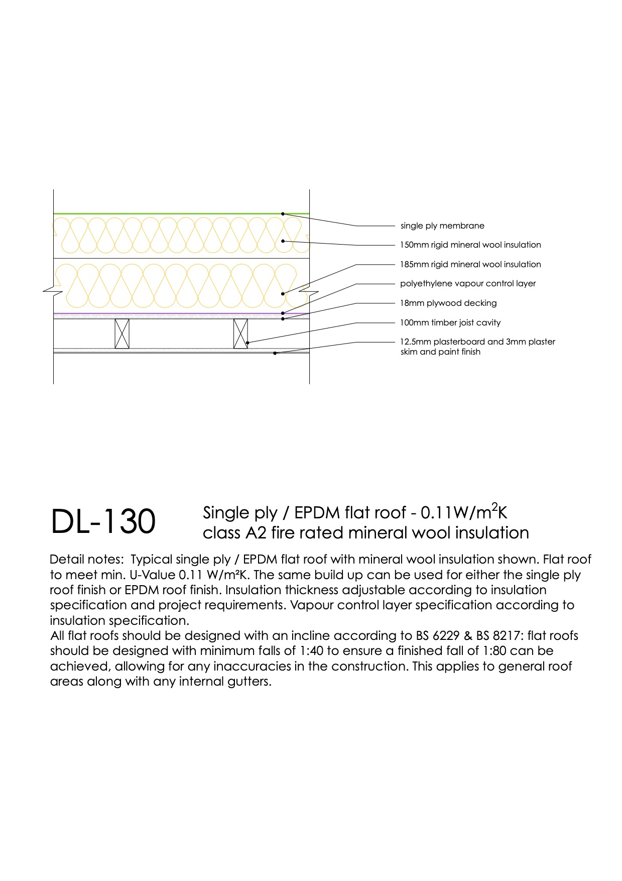 All flat roofs should be designed with an incline according to BS 6229 & BS 8217: flat roofs should be designed with minimum falls of 1:40 to ensure a finished fall of 1:80 can be achieved, allowing for any inaccuracies in the construction. This applies to general roof areas along with any internal gutters.